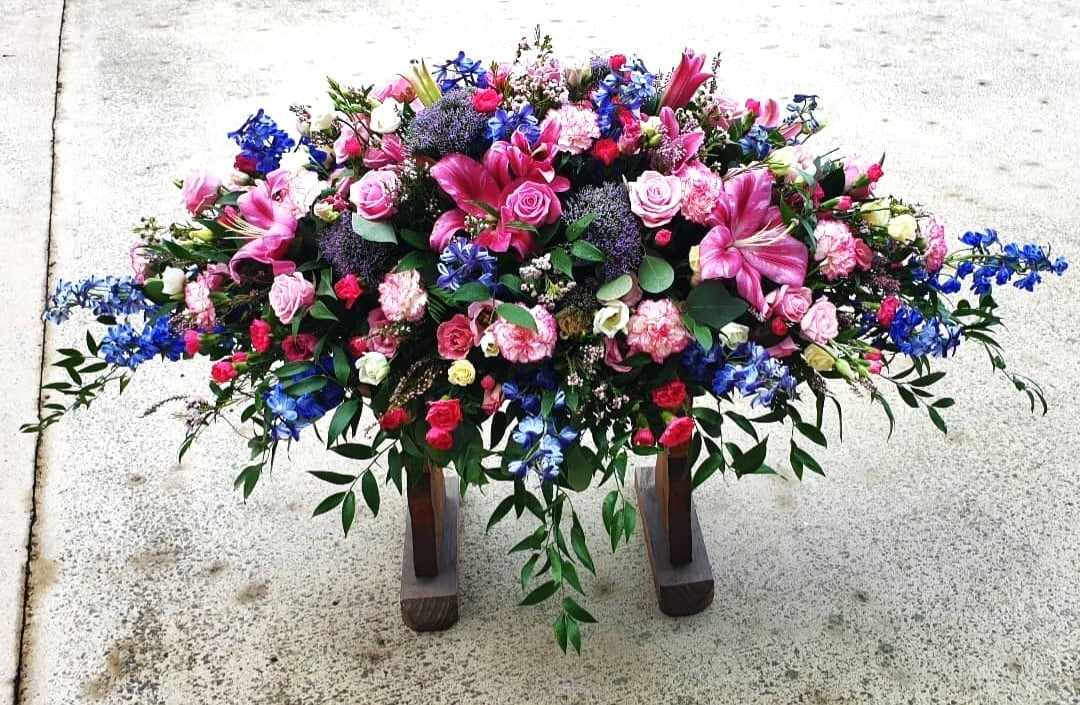Pink, Blue and Purple Casket Spray